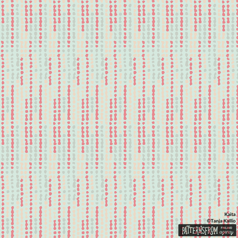 The ‘Kaita’ pattern is a stripy dot pattern inspired by weaving textures. Photo-edited Kaita pattern is designed by Tanja Kallio and it has a strong vertical rhythm taken from Finnish weavings and the colors of the pattern give it a modern ethnical atmosphere.
