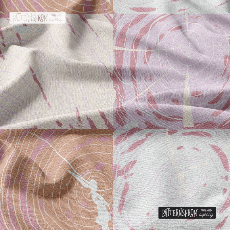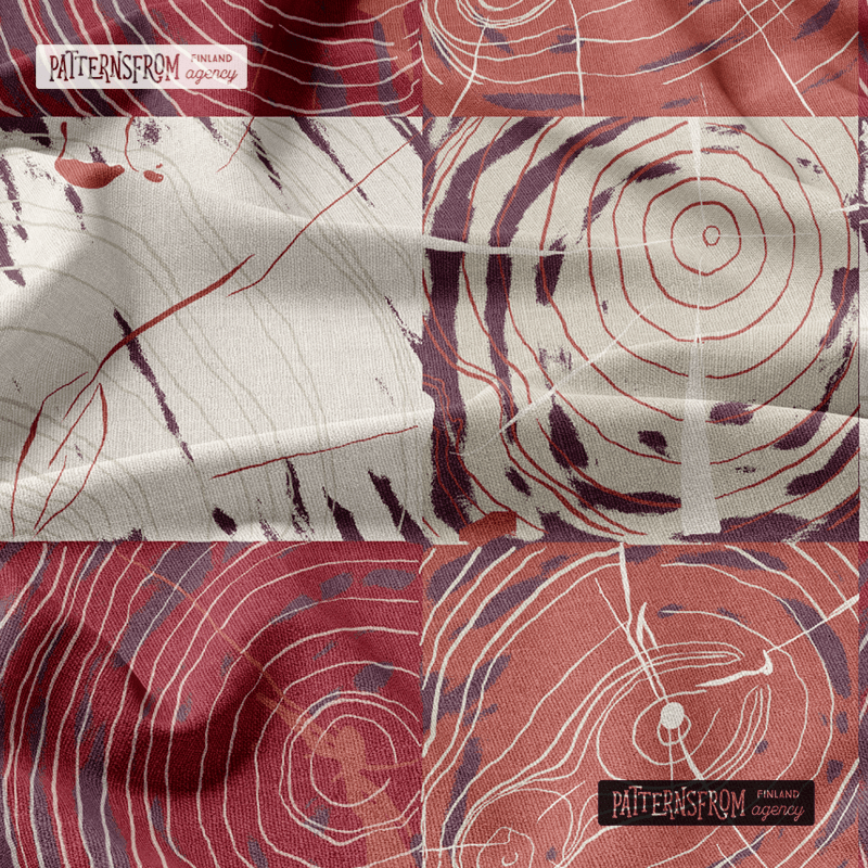 I am interested in depicting time. In the Heartwood patterns, I have depicted the heartwood, the innermost part of the tree trunk, which acts as a supporting structure for the tree. As the tree ages, darker heartwood begins to form. My pattern connects tree structures of different sorts and ages.