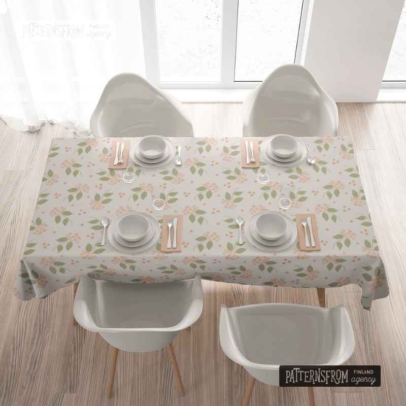 “Porcelain” is a versatile, all-around pattern that can be scaled to suit many uses. It brings a touch of Scandinavian romance to interiors that celebrate color.