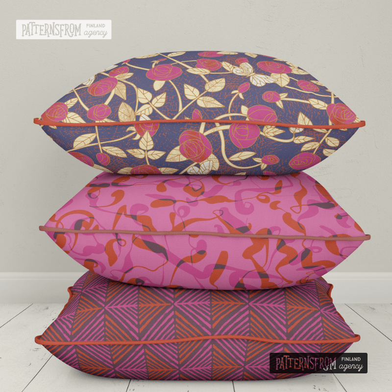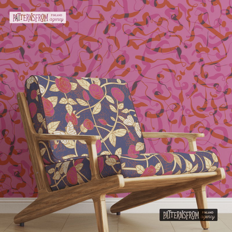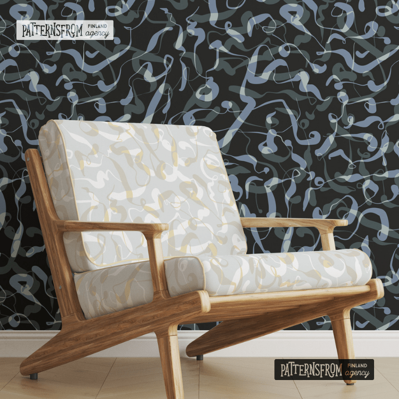 All patterns in the “Rönsyjä” pattern family are especially designed for wallpaper. The pattern family consists of two patterns with a sprawling atmosphere and one balancing, more regular pattern. The sprawling shapes of the “Savu” pattern are inspired by a campfire.